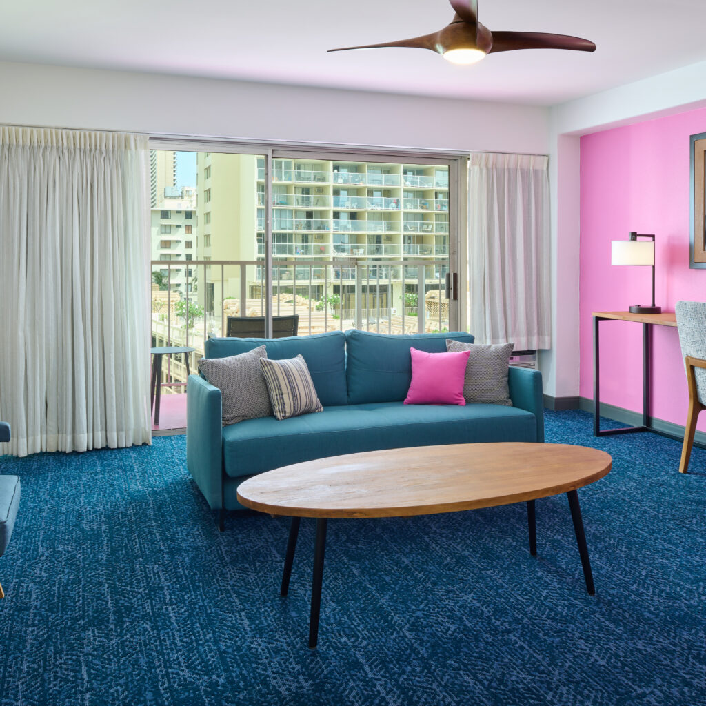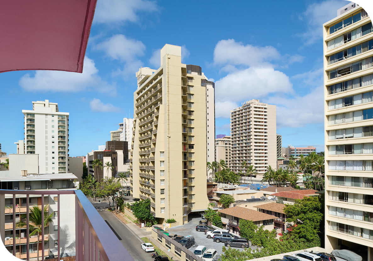 All 2-Bedroom Suites include city views, though you can also see part of the Ala Wai Canal from the balcony when looking to the right.