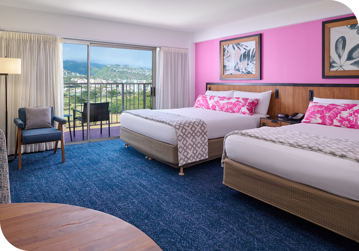 Our ‘Ilima Studio accommodates up to 3 adults and 1 child. If you’re traveling with a larger group or simply want a little extra space to spread out, consider our 1-Bedroom Suite, which features a separate living area and additional sleeping options.